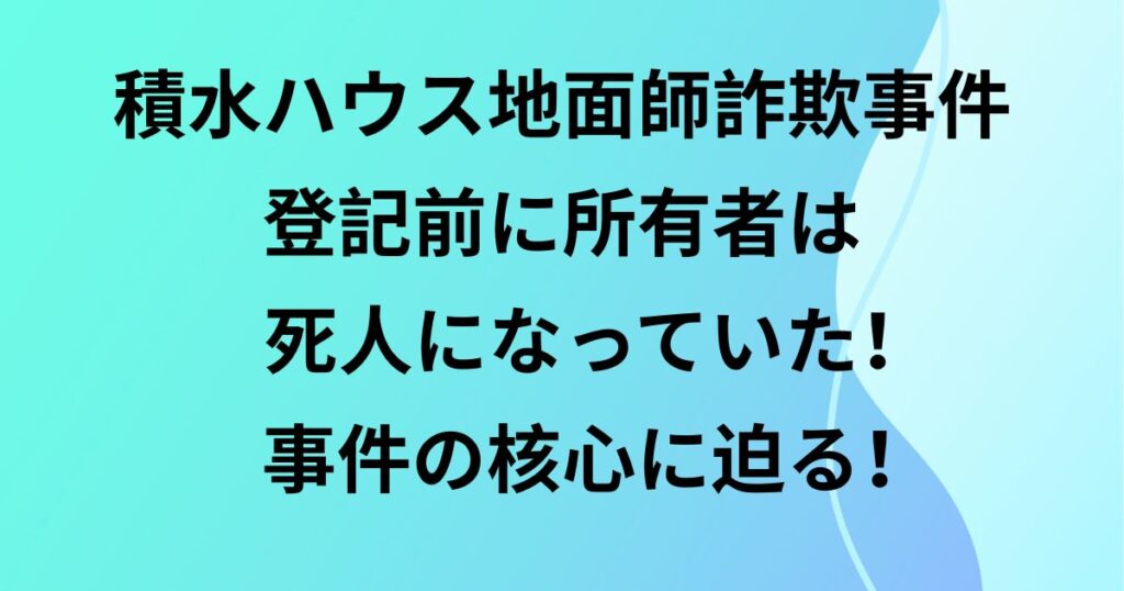 積水ハウス地面師詐欺事件・登記前に所有者は死人になっていた!事件の核心に迫る!