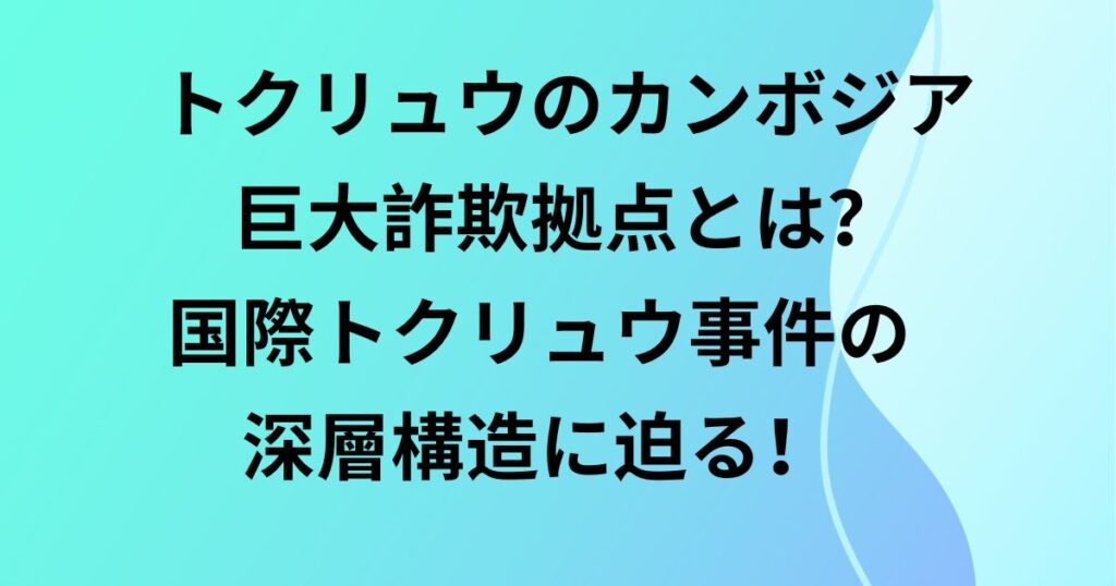 トクリュウのカンボジア巨大詐欺拠点とは?国際トクリュウ事件の深層構造に迫る!