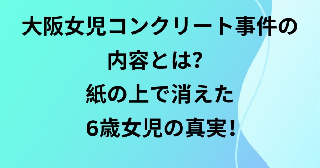 大阪女児コンクリート事件の内容とは? 紙の上で消えた6歳女児の真実!