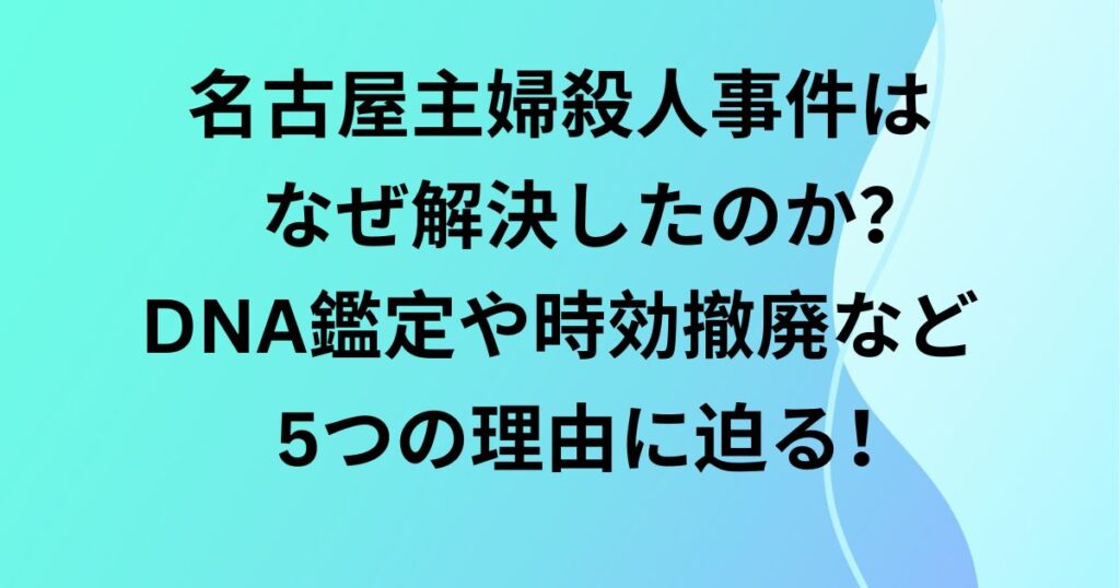 名古屋主婦殺人事件はなぜ解決したのか?DNA鑑定や時効撤廃など5つの理由に迫る!