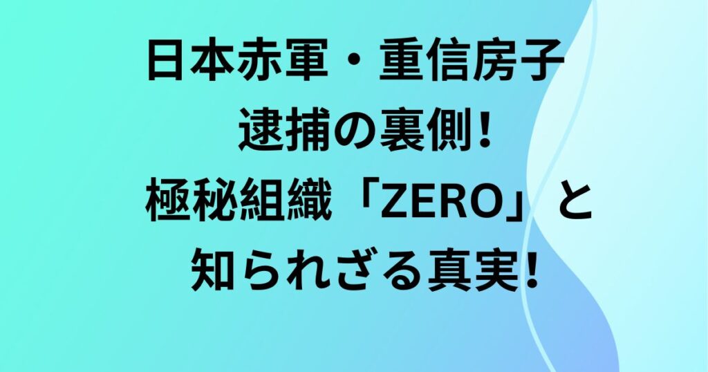 日本赤軍・重信房子逮捕の裏側!極秘組織「ZERO」と知られざる真実!