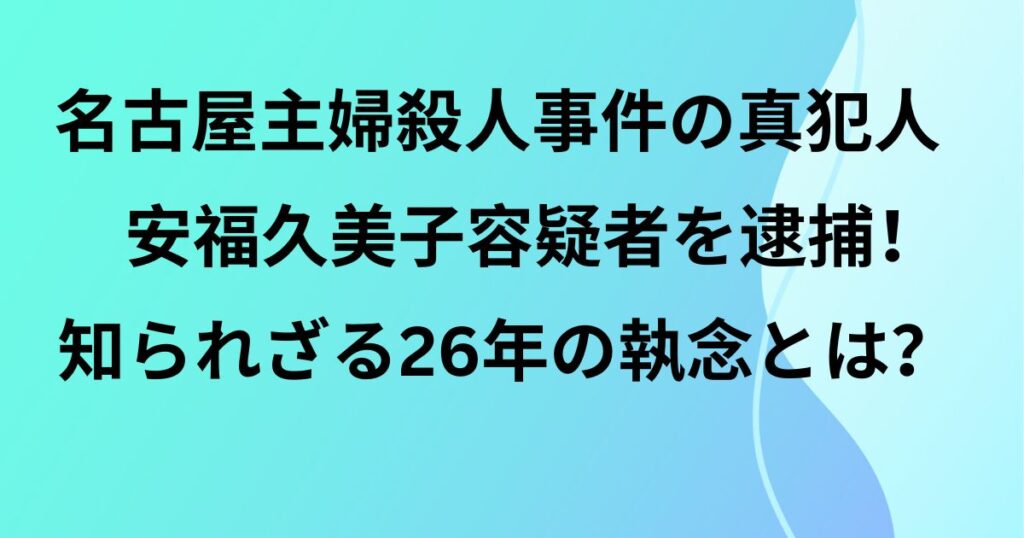 名古屋主婦殺人事件の真犯人・安福久美子容疑者を逮捕!知られざる26年の執念とは?