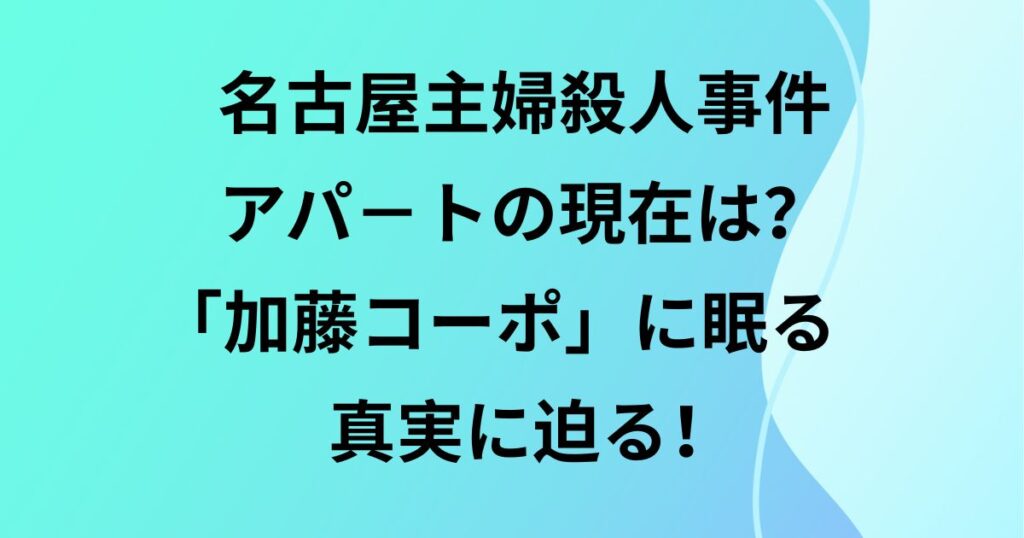 名古屋主婦殺人事件・アパ-トの現在は?「加藤コーポ」に眠る真実に迫る!