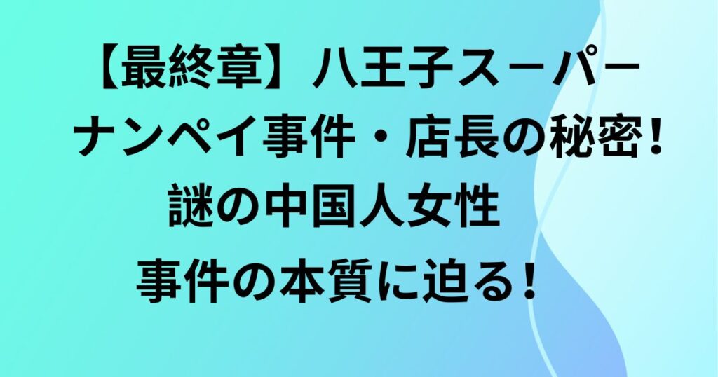 【最終章】八王子ス-パ-ナンペイ事件・店長の秘密!謎の中国人女性・事件の本質に迫る!