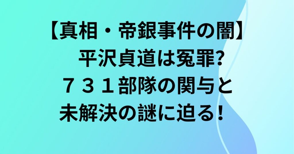 【真相・帝銀事件の闇】平沢貞道は冤罪?731部隊の関与と未解決の謎に迫る!