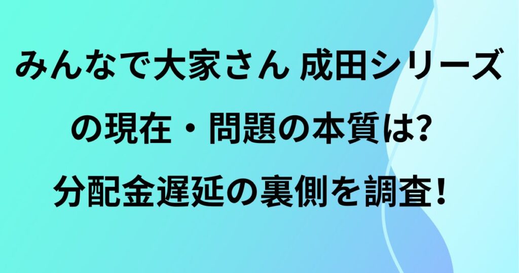 「みんなで大家さん 成田シリーズ」の現在・問題の本質は?分配金遅延の裏側を調査!
