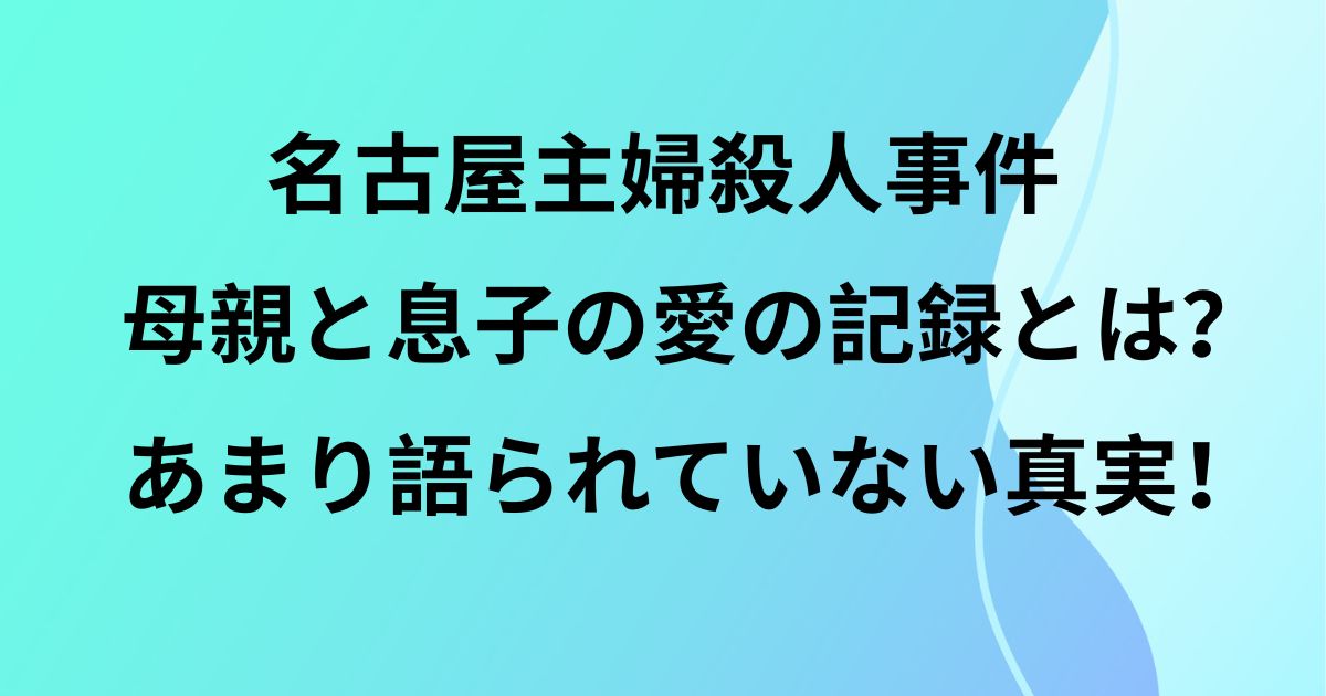 名古屋主婦殺人事件・母親と息子の愛の記録とは?あまり語られていない真実!