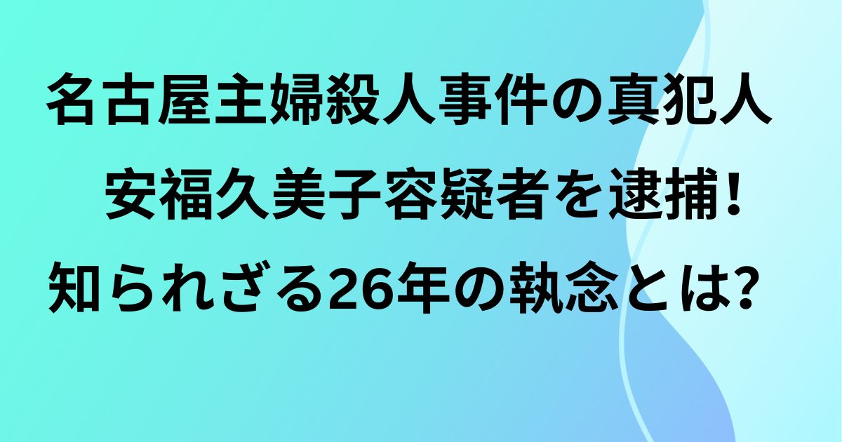 名古屋主婦殺人事件の真犯人・安福久美子容疑者を逮捕